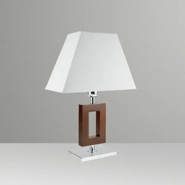 Abajur retângulo 15x10 cm, com sua sofisticada forma geométrica e a mistura perfeita de madeira com metal