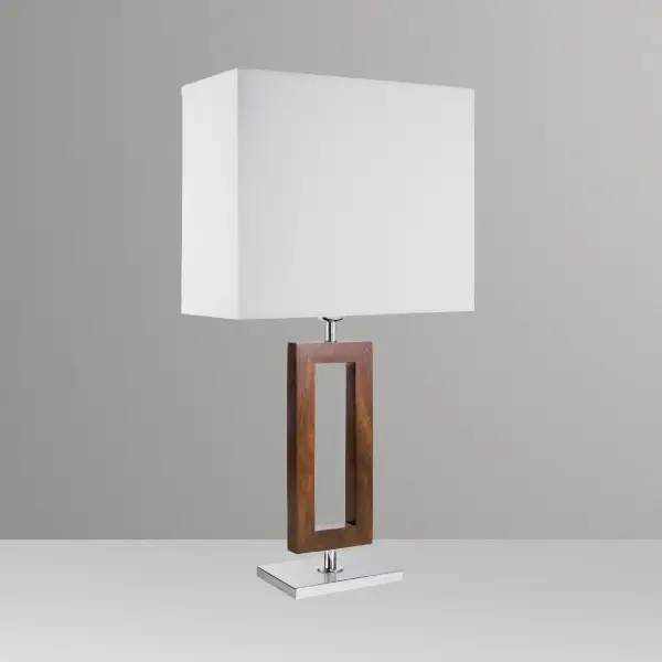 Abajur retângulo 25x11 cm, com sua sofisticada forma geométrica e a mistura perfeita de madeira com metal
