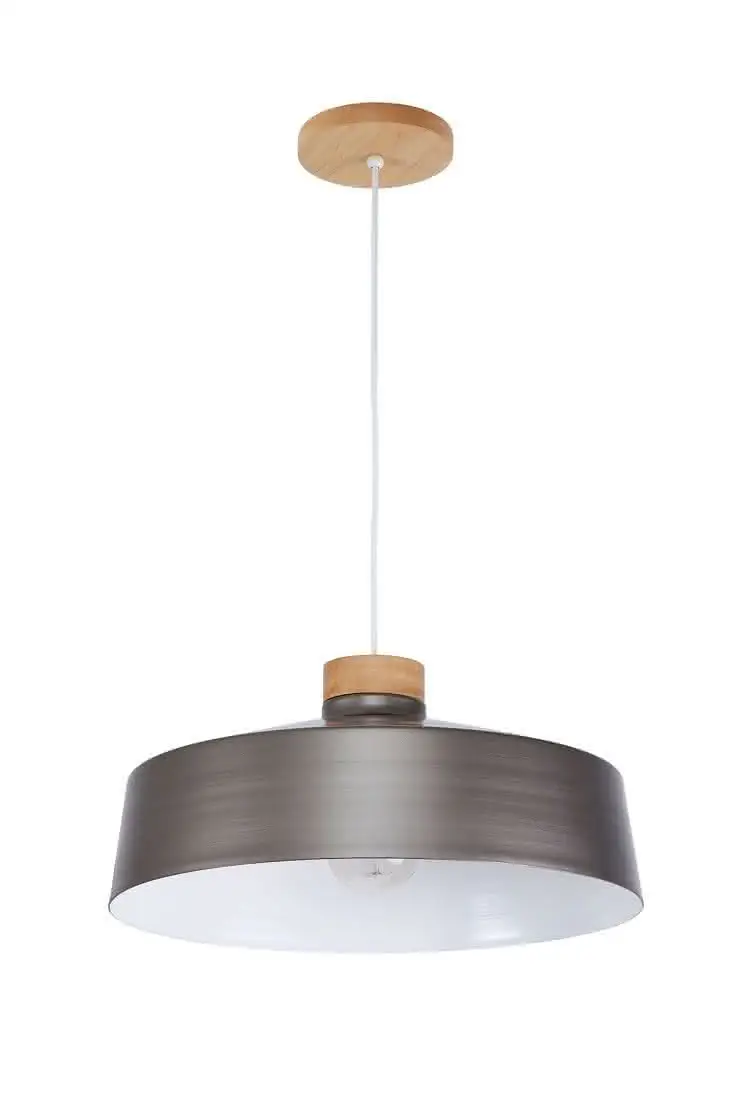 Pendente Madeira Cupula Metal Titanio 45cm Vibrance 2730 com destaque decorativo e luz funcional para salas, cozinhas, salas de jantar, areas externas, garanta já o seu.